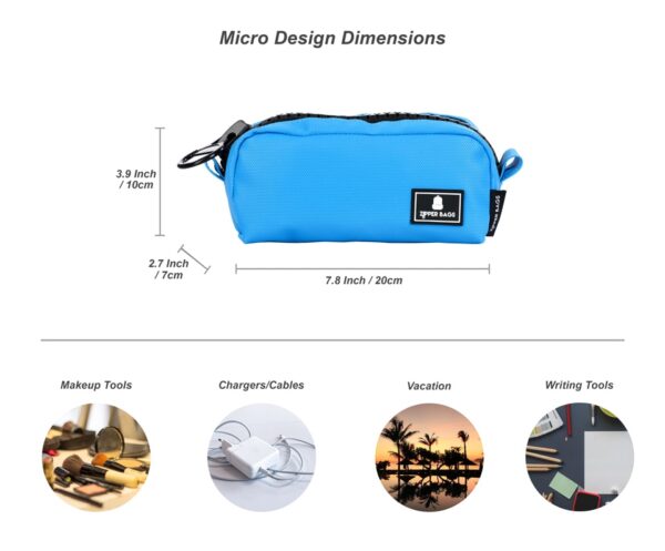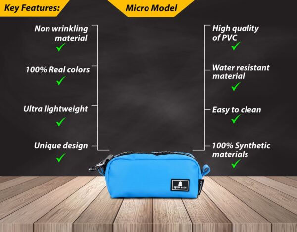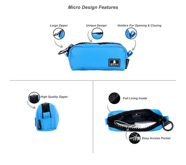 התיק מיקרו הוא התיק הקטן ביותר שיש לחברה. התיק מורכב מתא אחד מרכזי עם רוכסן גדול ומיוחד,לתיק יש בטנה מלאה והוא עשוי מחומרים עמידים במים וקלים לניקוי .