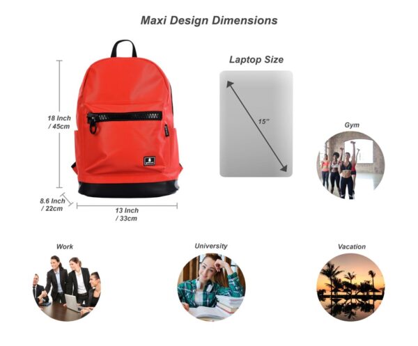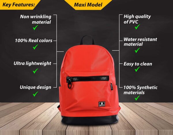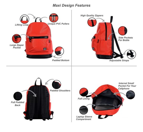תיק מקסי הוא התיק הגדול ביותר בסדרה. הוא מגיע במגוון צבעים והדפסים. בתיק יש תא מרופד פנימי עבור המחשב הנייד שלך (עד "15), כיס קטן עבור הטלפון הסלולרי שלך, שני כיסים עבור בקבוקי מים בצדדים וכיס קדמי עם ריצרץ גדול.