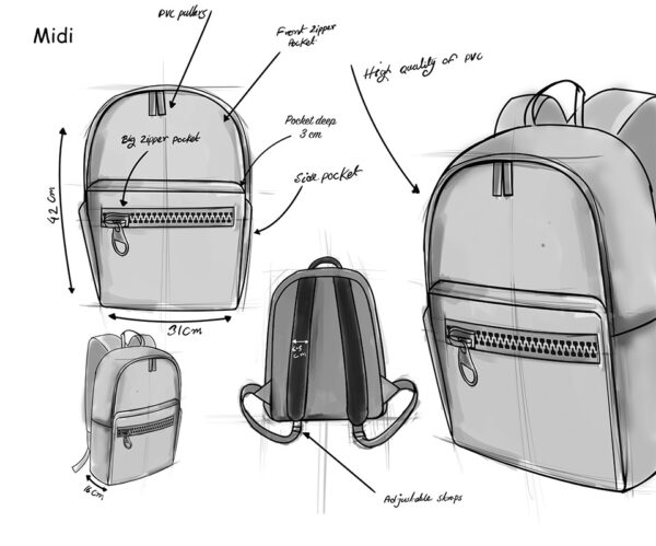 תיק מידי הוא התיק האמצעי בסדרה. הוא מגיע במגוון צבעים והדפסים. בתיק יש תא פנימי מרופד עבור המחשב הנייד(עד "15), שני כיסים עבור בקבוקי מים בצדדים וכיס קדמי עם ריצרץ גדול .