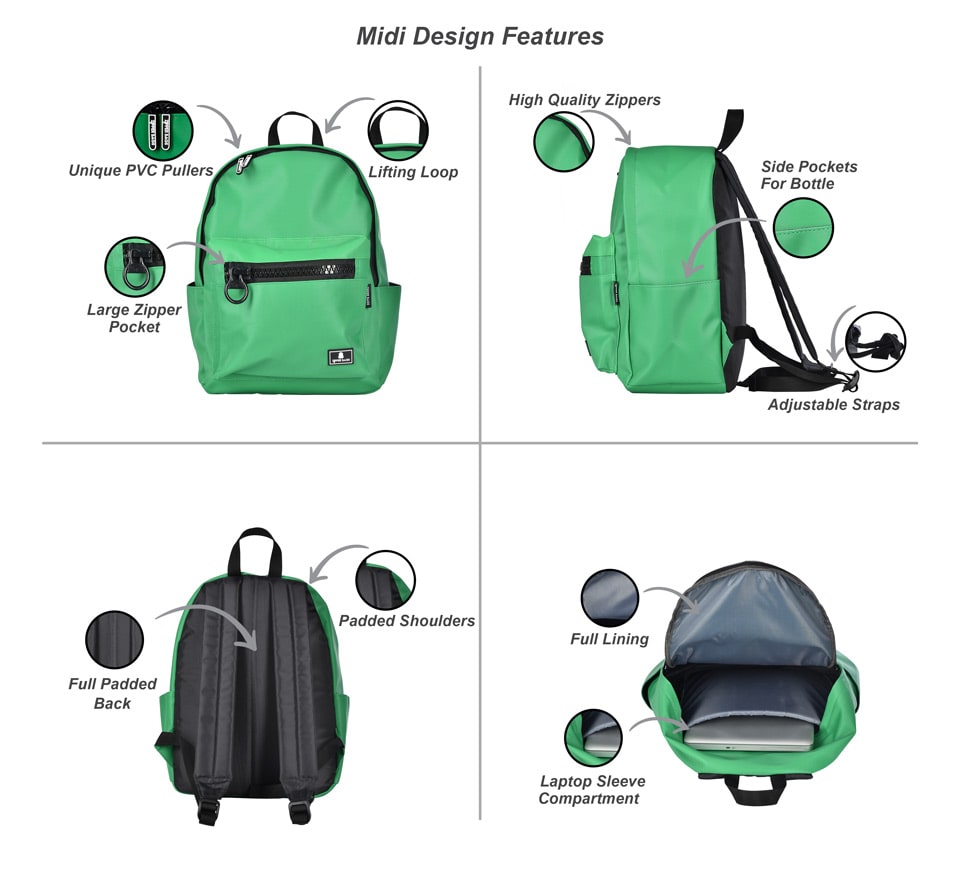 תיק מידי הוא התיק האמצעי בסדרה. הוא מגיע במגוון צבעים והדפסים. בתיק יש תא פנימי מרופד עבור המחשב הנייד(עד "15), שני כיסים עבור בקבוקי מים בצדדים וכיס קדמי עם ריצרץ גדול .