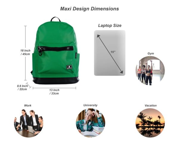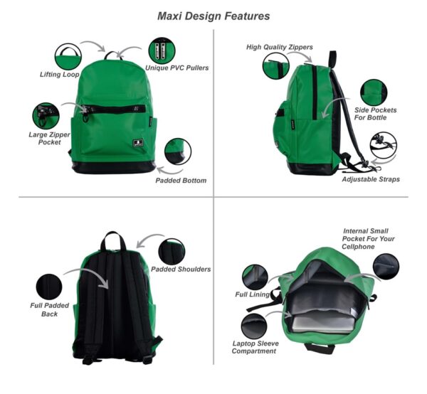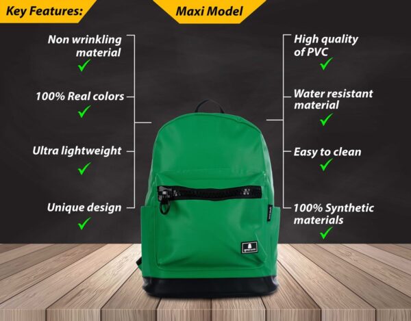 תיק מקסי הוא התיק הגדול ביותר בסדרה. הוא מגיע במגוון צבעים והדפסים. בתיק יש תא מרופד פנימי עבור המחשב הנייד שלך (עד "15), כיס קטן עבור הטלפון הסלולרי שלך, שני כיסים עבור בקבוקי מים בצדדים וכיס קדמי עם ריצרץ גדול.